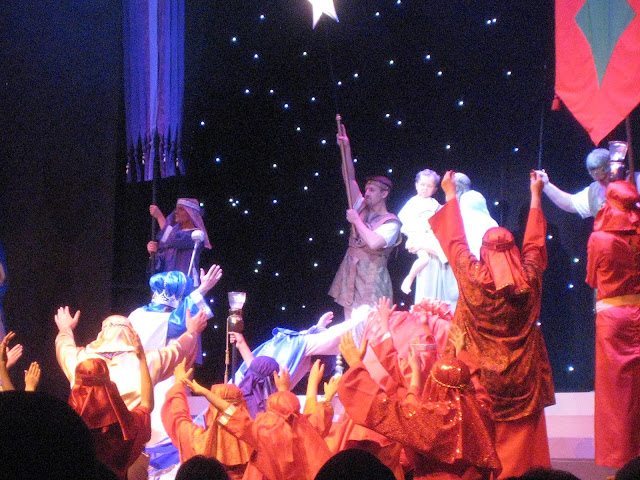 Snapped this picture of the choir in concert mode during Act II of the Pageant. And this picture of the final moments of the grand tableau with the wise men at the end of Act III.